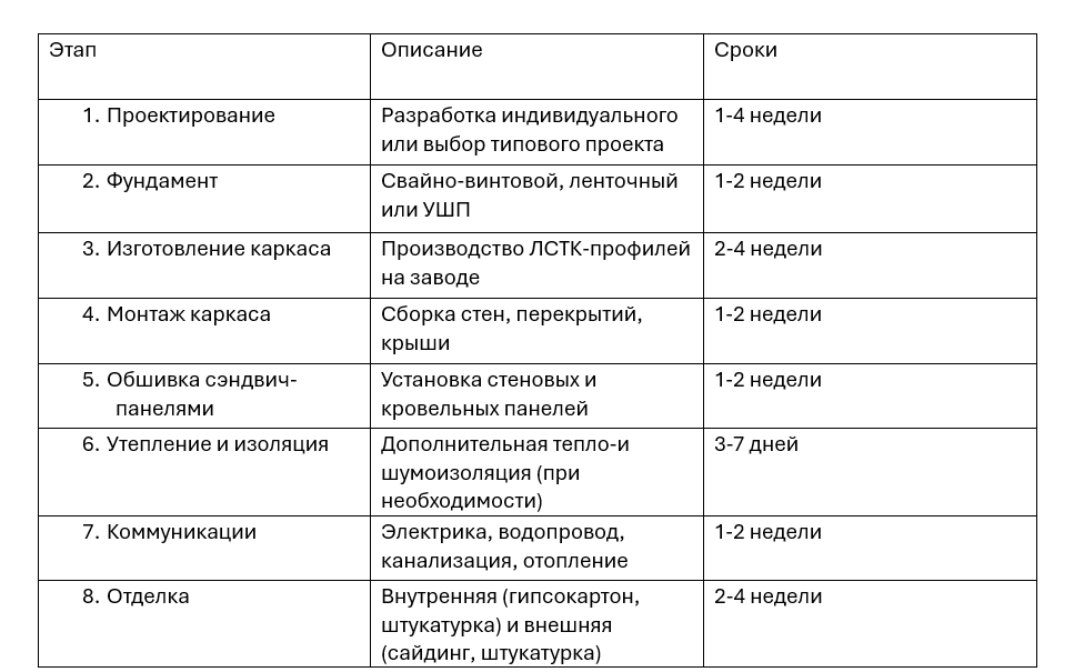 Итог: Технология ЛСТК + сэндвич-панели – отличный вариант для доступного, теплого и быстрого строительства. Главное – выбрать *качественных подрядчиков* и правильно утеплить дом.
